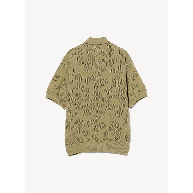 A lightweight knit polo shirt designed by BEAMS, featuring a mesh construction inspired by a leopard patternperfect for warm summer days.