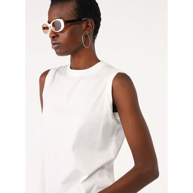 A lightweight yet refined sleeveless tee crafted from 60/2 supersized long-staple cotton jersey by SLOANE. Treated with a wrinkle-resistant finish and added UV protection, it maintains a smooth look wash after wash.