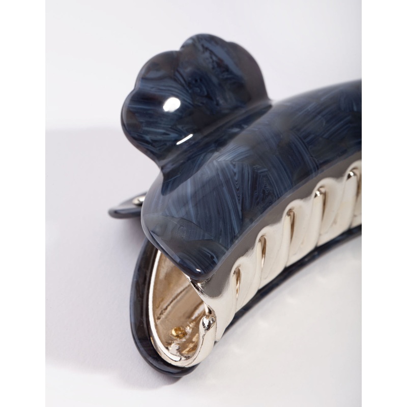 Channel the 90s with attention-grabbing hair accessories that are chunky in size and big in impact. This claw clip is midnight blue with a shiny finish. It measures 9cm in length.