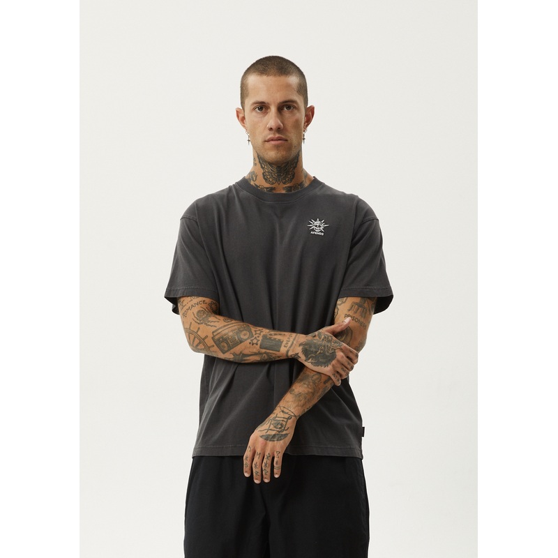 AFENDS Mens Graveyard – Boxy Tee – Stone Black