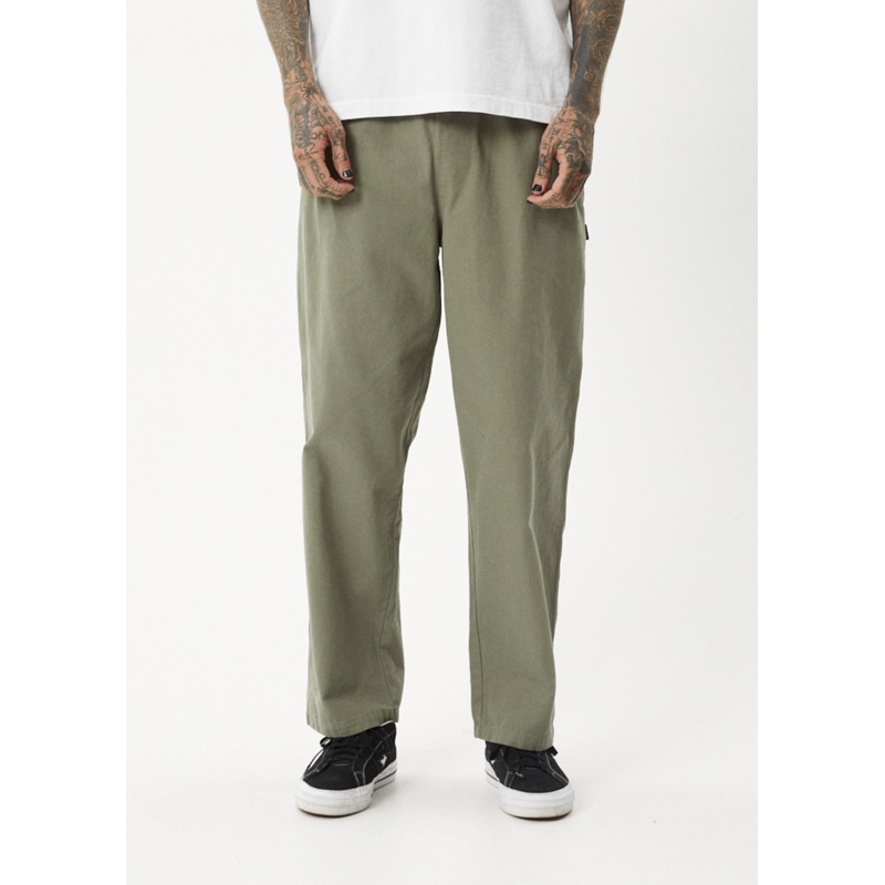 AFENDS Mens Ninety Eights – Baggy Elastic Waist Pant – Olive