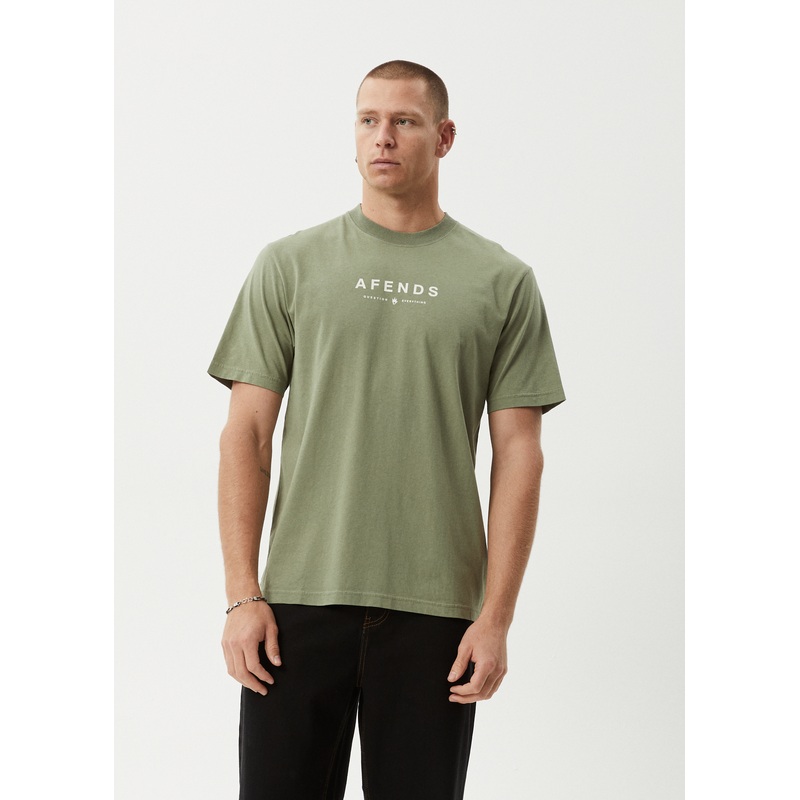 AFENDS Mens Thrown Out – Retro Tee – Oil Green