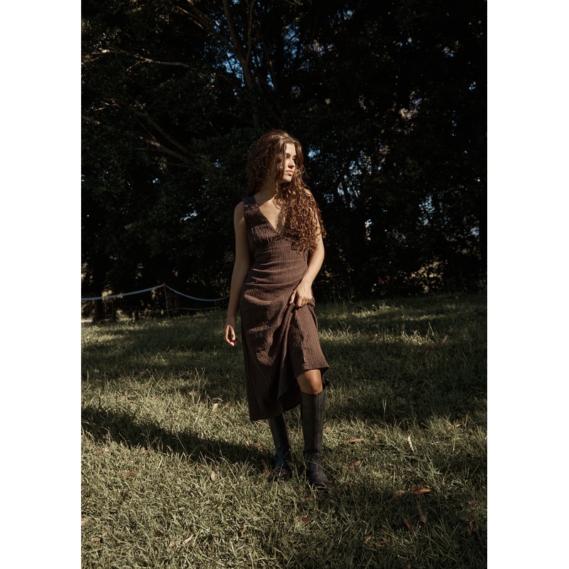 One of our best selling Focus dress is back in a new colour. Made from a hemp and tencel blend, this seersucker maxi dress is textured, comfy and perfect for when you want to slip into something easy. Featuring a removable waist tie, you can wear it alone or layer with a long sleeve top in winter to create the perfect year-round number.