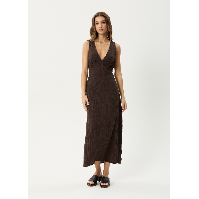 AFENDS Womens Focus – Seersucker Maxi Dress – Coffee