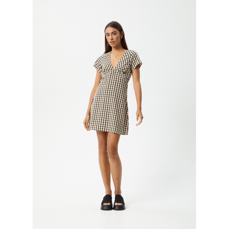 AFENDS Womens Gambet Check – Tea Dress – Black / Sand