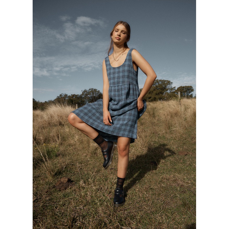 We’ve added length to our beloved Jesse Dress, now crafted in our lightweight, hemp and tencel seersucker. This fabric features our in-house-designed, yarn-dyed woven check with a textured feel. Offering a relaxed fit with a scooped neck and back, and self-fabric in-seam pockets for added convenience.