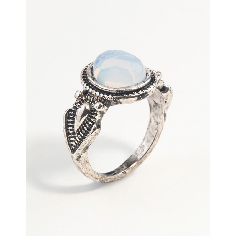 Make a statement in a stunning fashion ring. Stack with other styles for extra impact or wear alone for a refined addition to your ensemble. This ring features an antique silver-toned design with a moonstone embellishment.