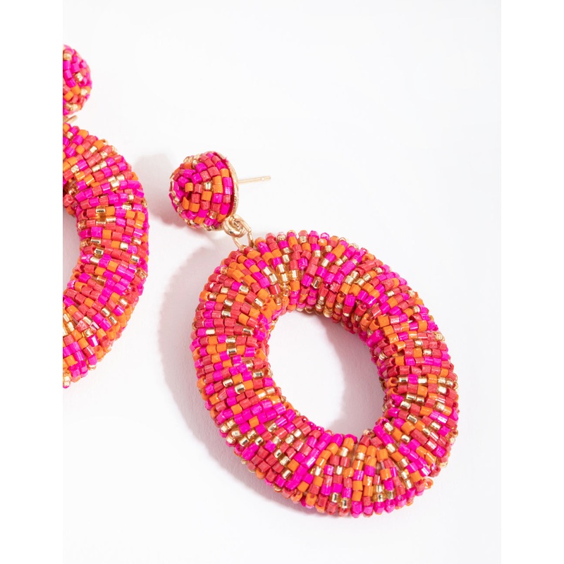 Leave a lasting impression with a pair of statement earrings! These earrings boast a chunky doughnut drop that is covered in vibrant beads. Let them stand alone for a considered look.
