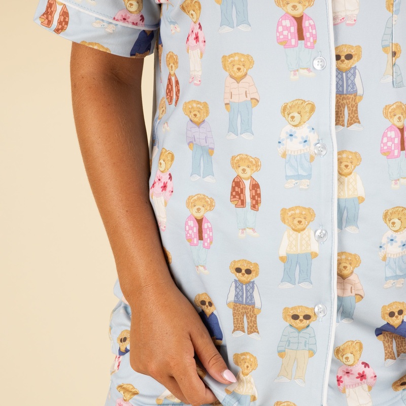 Cozy up in playful style with this pajama top featuring an allover print of stylish teddy bears. Made with soft fabric and a relaxed fit, this top is perfect for lounging or bedtime fun.