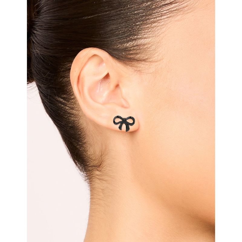 Be the first to review “Black Coated Metal Ribbon Bow Stud Earrings”