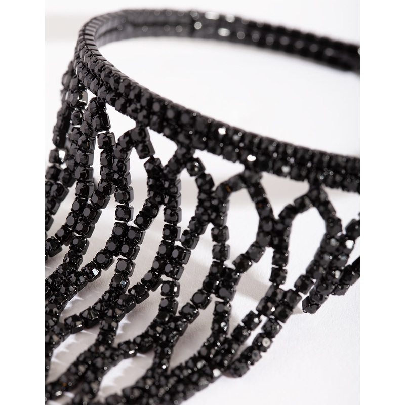 We love a fashion-forward bangle stack! Mix and match styles to create your own customised look, or wear alone for a curated addition to any outfit. This hand chain comes in black with a diamante embellished design.