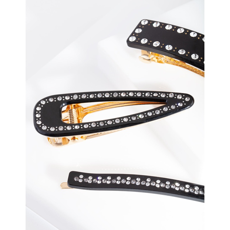 Our black hair accessories are a versatile must-have! This gold-toned hair clip pack is adorned with diamantes making it the perfect finishing touch to any outfit. Draw attention to your luscious locks with this hair clip pack.