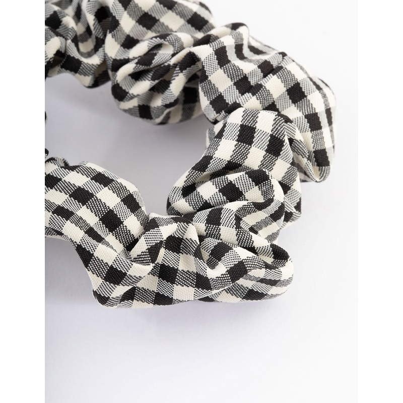 Black Fabric Checkered Scrunchie