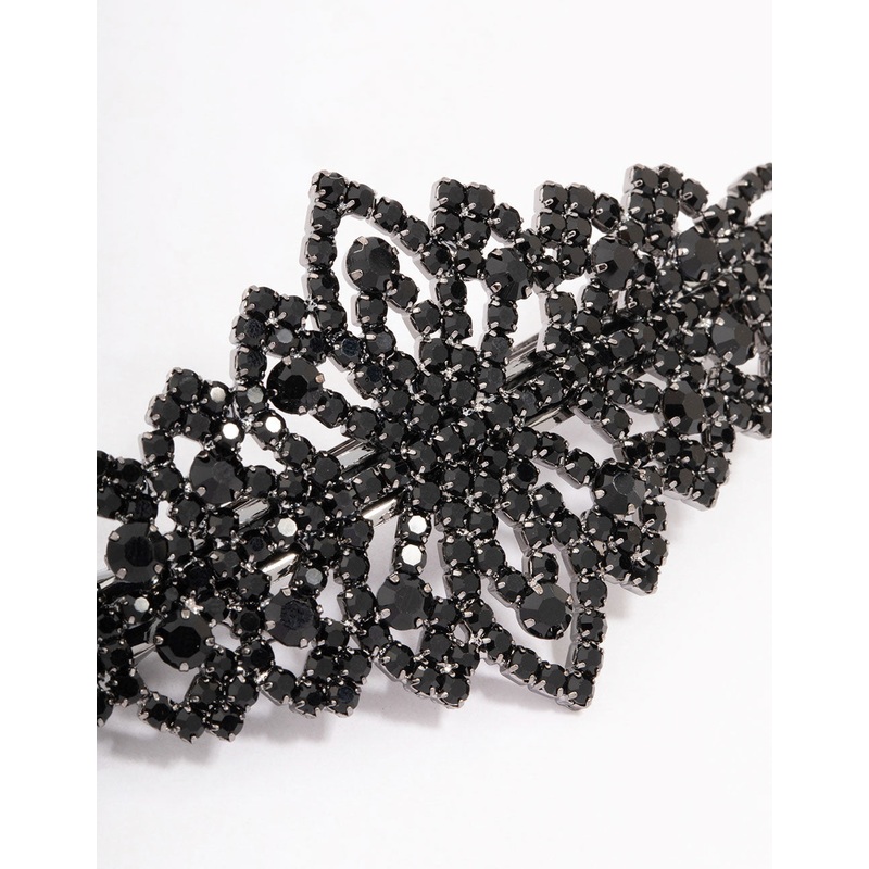 Complete your hairstyle with this ornate, black diamante hair clip. This alligator clip is perfect for styling with half-up hairstyles, featuring a collection of black-coloured diamantes for an elevated look.