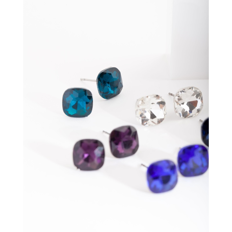 Blue Purple Gem Stud Earring Pack