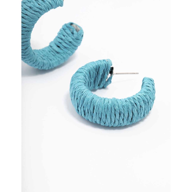 Style these Blue Thread Through Wrapped Hoop Earrings with a simple cord necklace for an on-trend finish to your outfit.