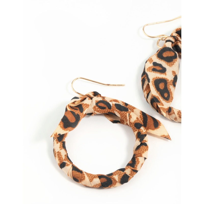 Be the first to review “Brown Animal Print Fabric Circle Earrings”