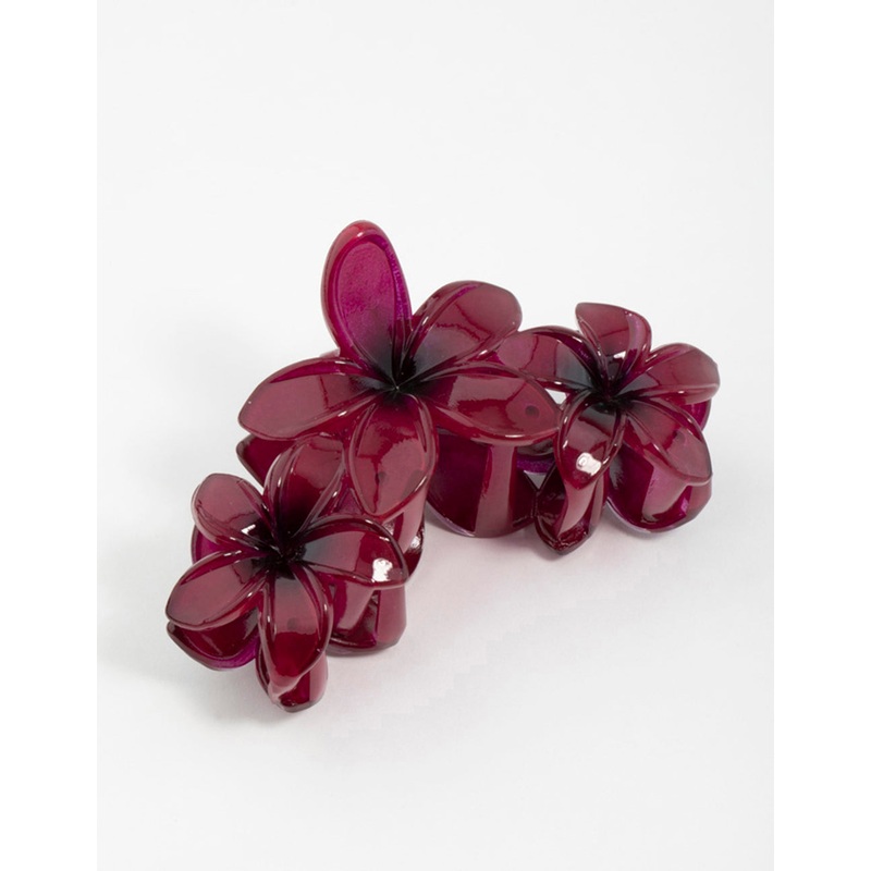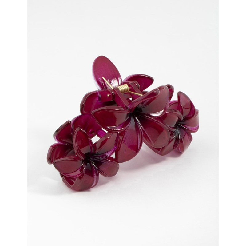 Add a tropical twist to your look with this Burgundy Frangipani Flowers Hair Claw Clip. Perfect for pinning back your locks in style, this claw clip features delicate frangipani flower details in a rich burgundy hue.