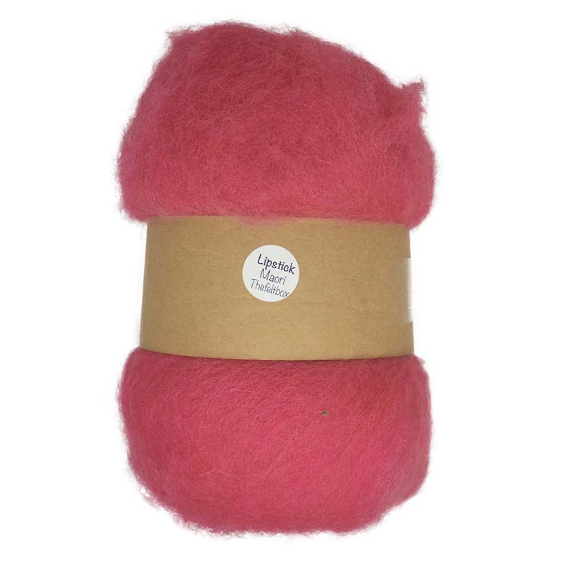 Carded Felt Wool Needle Felting Carded Batt Pink Blush Fuscia Maori DHG Lipstick