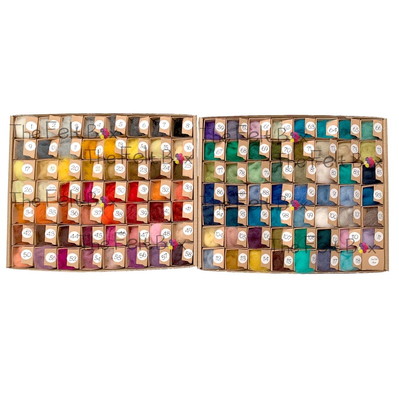 New Zealand carded wool colour shades designed to fit straight into your Felt Box Colour Palette boxes.