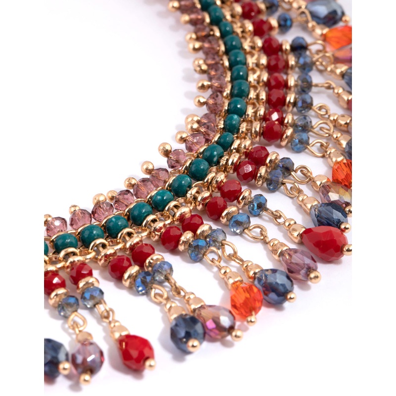 Let out your inner free spirit with this stunning necklace! It features a beautiful beaded design on a choker structure. It features a mix of gold, red and earthy tones. Layer it with beaded pieces for an earth-child look.