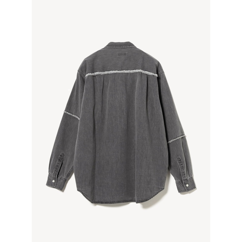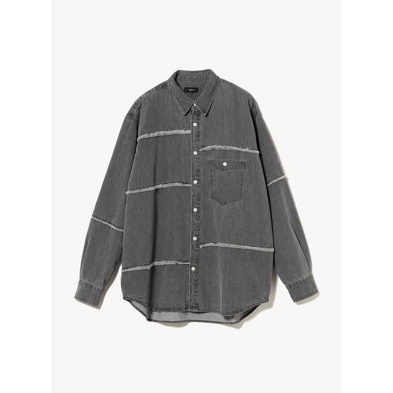 This statement-making denim work shirt features random panel switching and a distinctive faded finish, creating a bold and dynamic look.