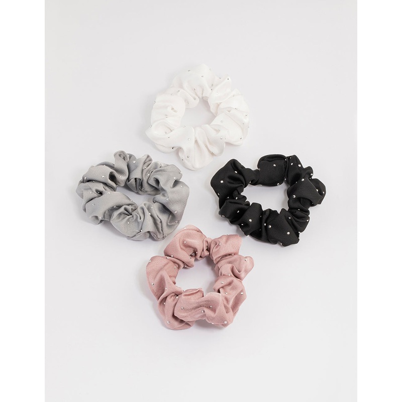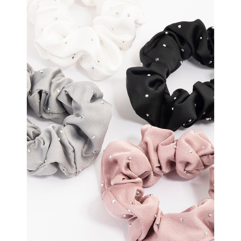 Fabric Mixed Diamante Scrunchie 4-Pack