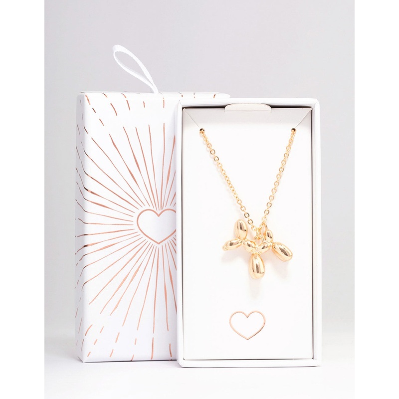 This gift box contains one gold pendant necklace featuring an artistic balloon dog pendant for a playful look.