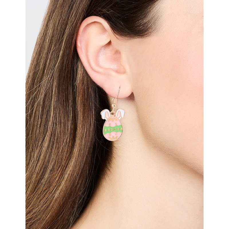 Hop into Easter fun with these pink and green bunny ear and easter egg earrings. These cute bunny ear and egg drop earrings are perfect for adding a playful touch to any outfit. Ideal for Easter or spring outings.