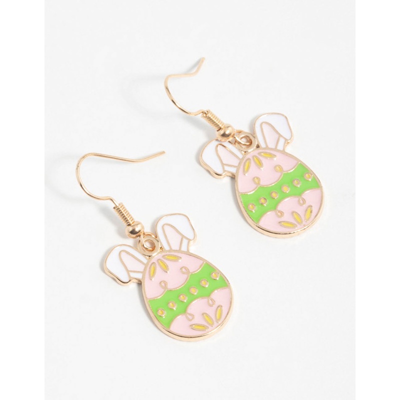 Gold Bunny Ear & Easter Egg Drop Earrings