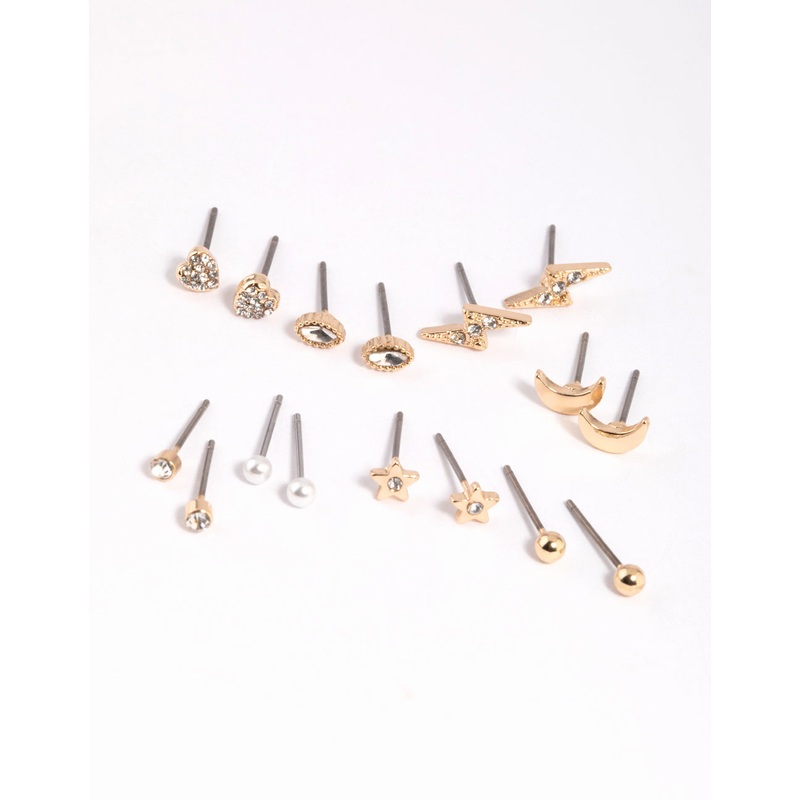 Mix them, match them, stack them! This earring pack features a variety of designs. Wear multiple pairs together, mix it up and wear a different earring on each ear or stack them up in a curated earring look. The options are endless, get creative!