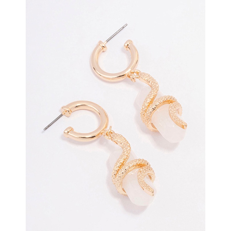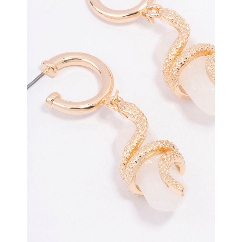 Be the first to review “Gold Clear Quartz Snake Wrapped Drop Earrings”