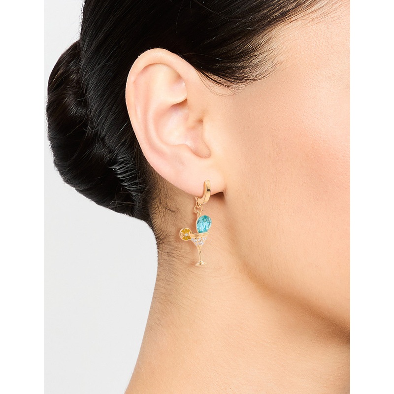 Add some fun to your style with these gold-toned huggie earrings! Featuring a blue diamante cocktail and a cute lemon design, you’ll be the life of the party.