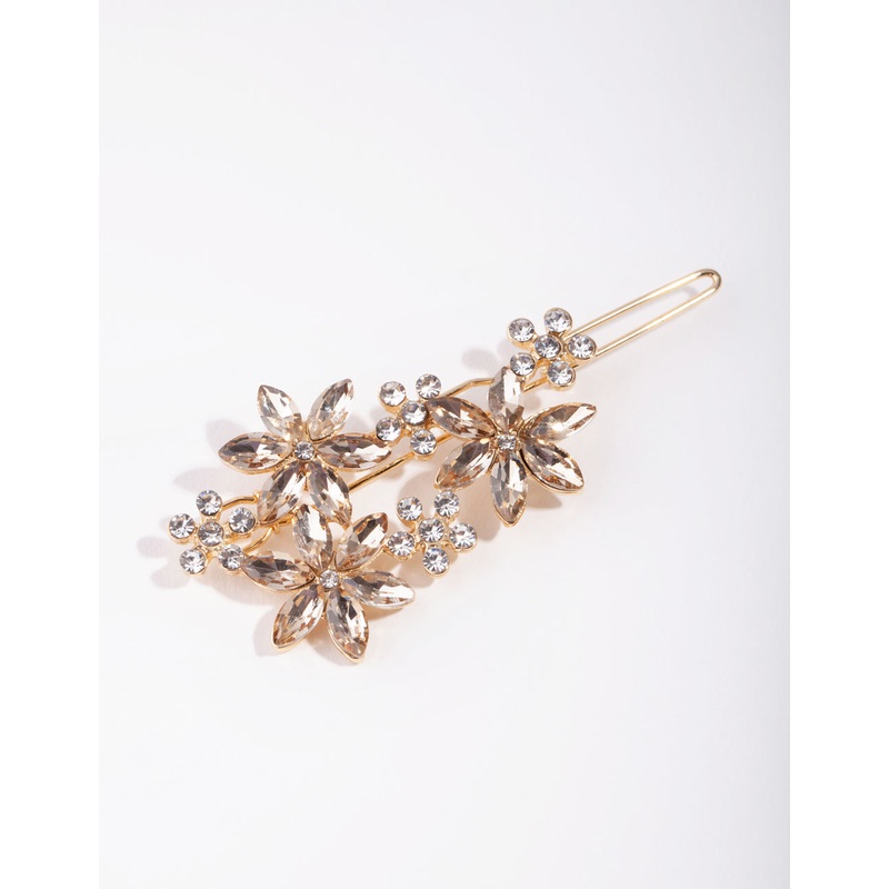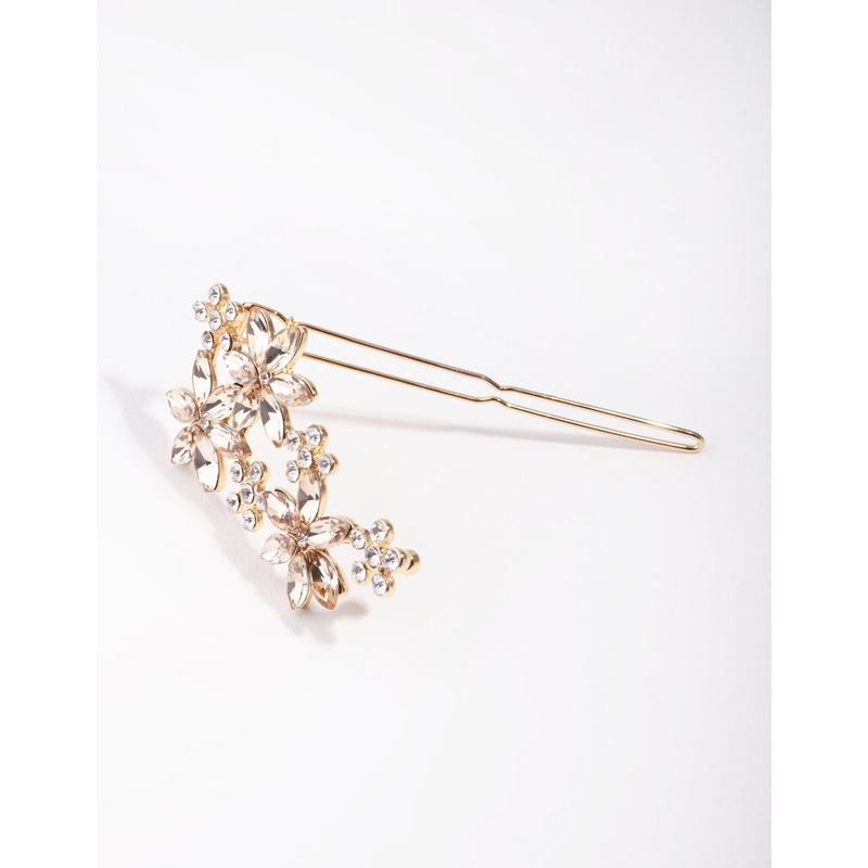 Add a touch of whimsy to your outfits by experimenting with hair accessories. This gorgeous gold-toned hair comb features flowers studded with diamantes for extra sparkle.