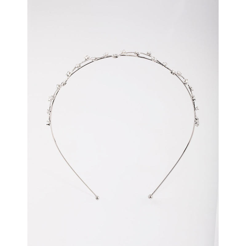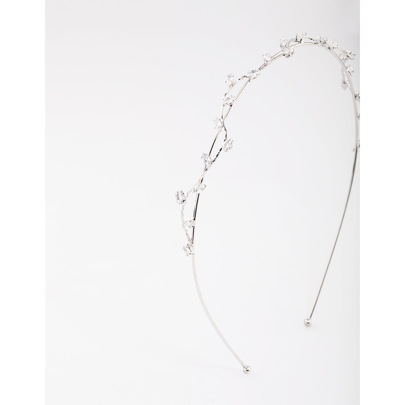 This dainty headband features a gold setting and vine design, encrusted with delicate cubic zirconia crystals for a feminine touch.