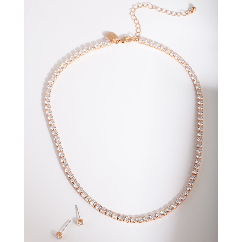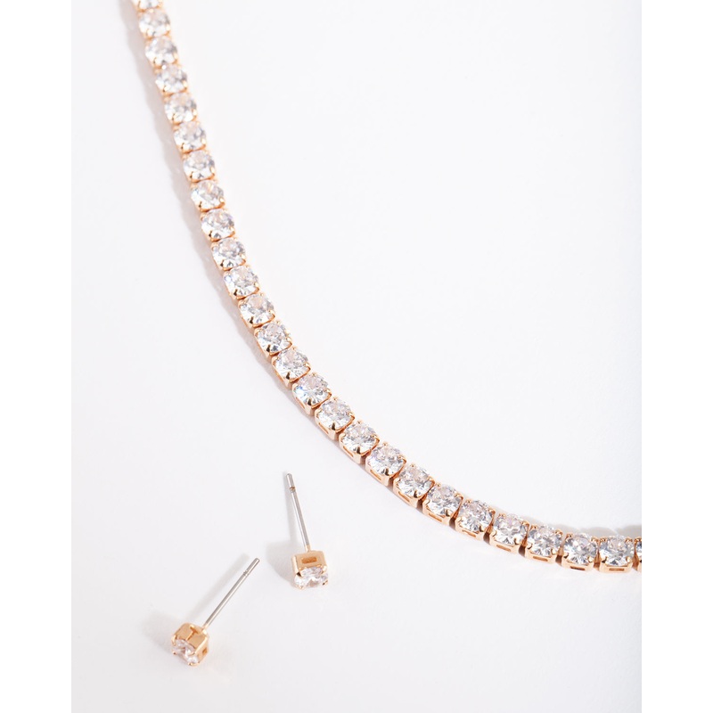 Add some glamour to your everyday looks with this matching jewellery set. This set boasts a gold-toned setting with cubic zirconia embellishments.