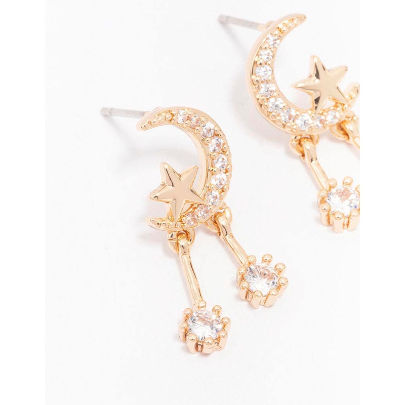 Gold Cubic Zirconia Moon & Star Drop Earrings
