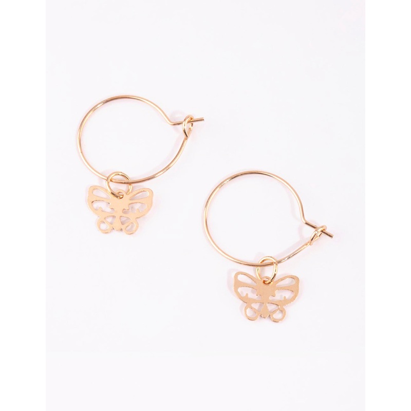 These pretty gold-toned drop earrings feature a cut-out butterfly design.