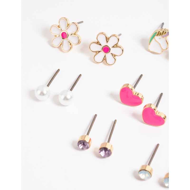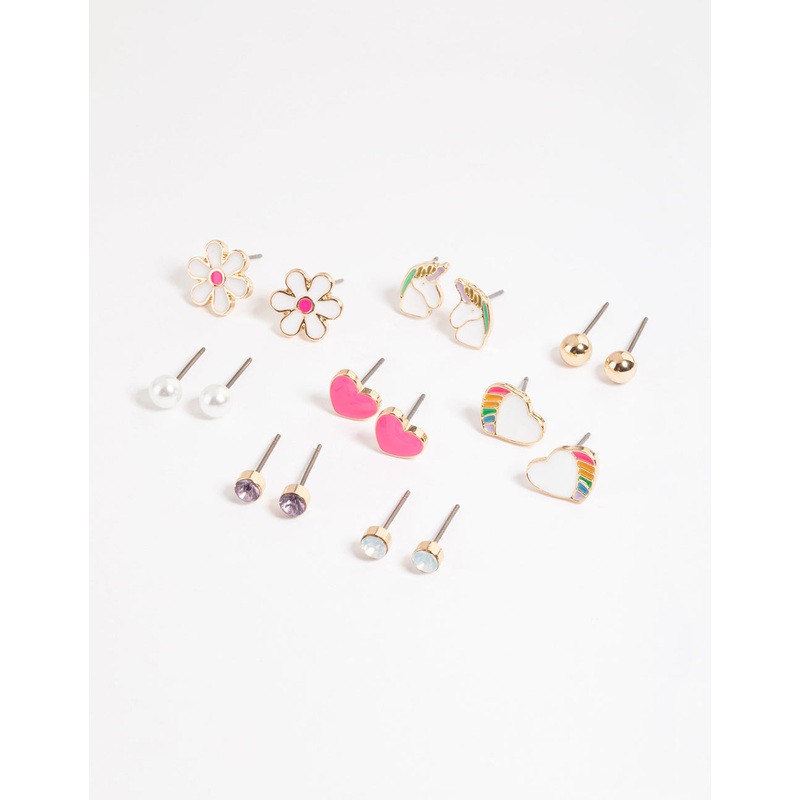 Gold Cute Unicorn Earrings 8-Pack