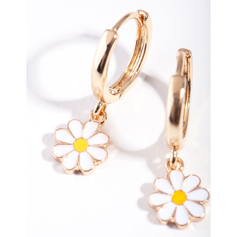 This daisy huggie earring is a must-have for any accessory lover! This gold-toned earring features a fresh white and yellow daisy drop design which looks perfect stacked with others or worn solo.