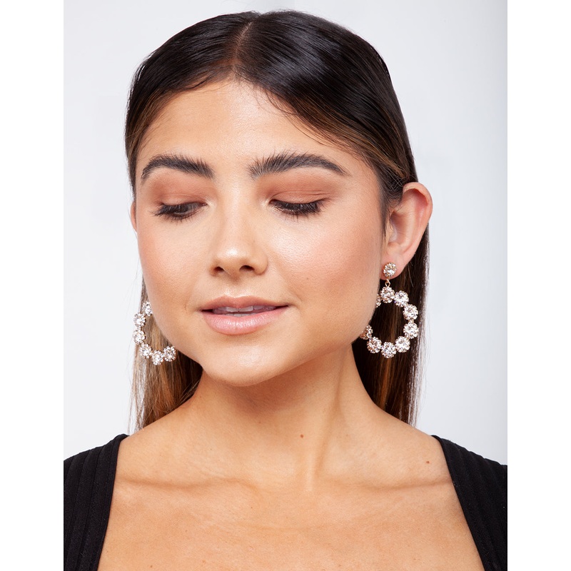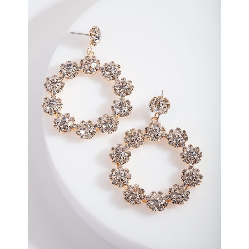 Gold Diamante Flower Circular Drop Earrings