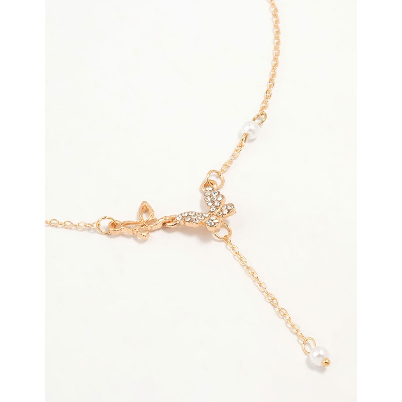 Be the first to review “Gold Diamante Pearl Butterfly Y-Necklace”