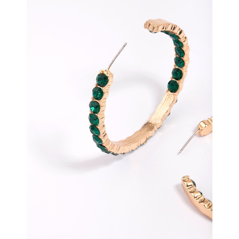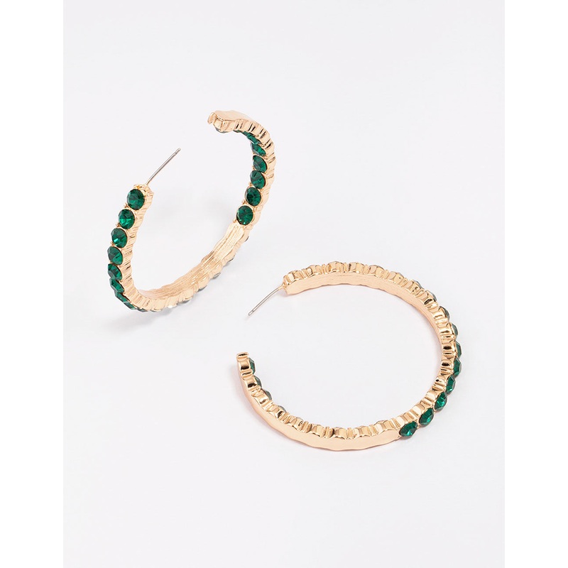 Add a pop of colour to your look with these timeless hoop earrings. These large hoops are designed with a gold-toned setting and encrusted with emerald-coloured crystals for a vibrant finish.