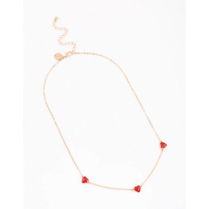 Gold Enamel Heart Station Short Necklace