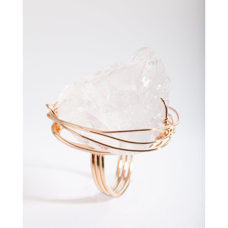 Make a statement in a stunning fashion ring. This ring features an extra large crystal wrapped with wire in a gold-tone setting.