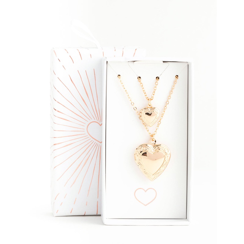 This necklace pack contains two gold pendant necklaces, adorned with intricate heart lockets for a timeless look.