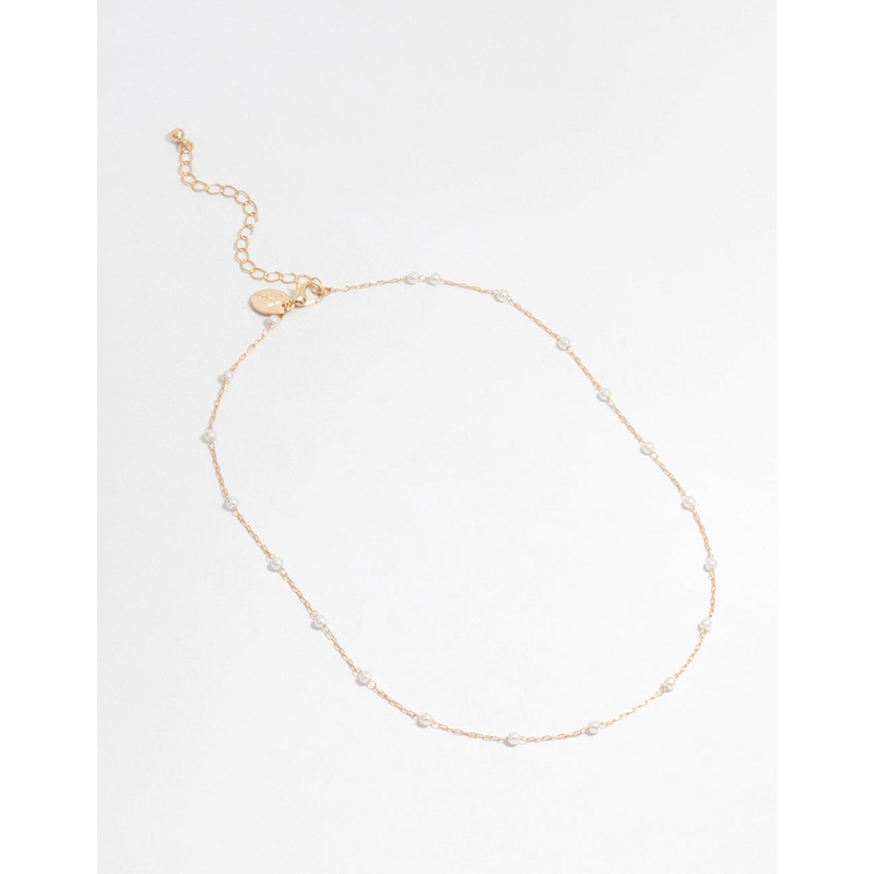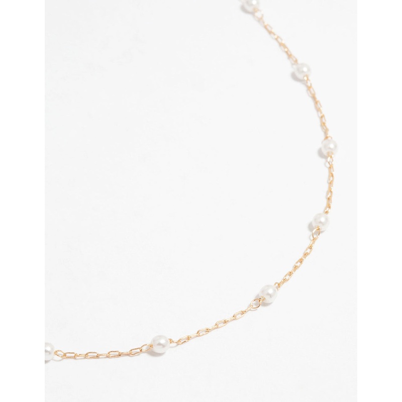 Gold Fine Pearl Station Necklace