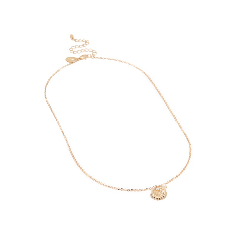 Gold Freshwater Pearl & Clam Pendant Necklace