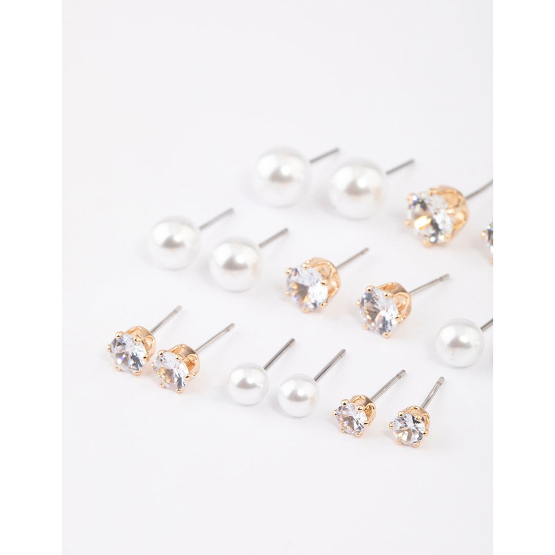 • Customise your look with this set of eight earrings, designed with a gorgeous gold-toned setting and embellished with graduating diamantes and pearls for a sophisticated look.