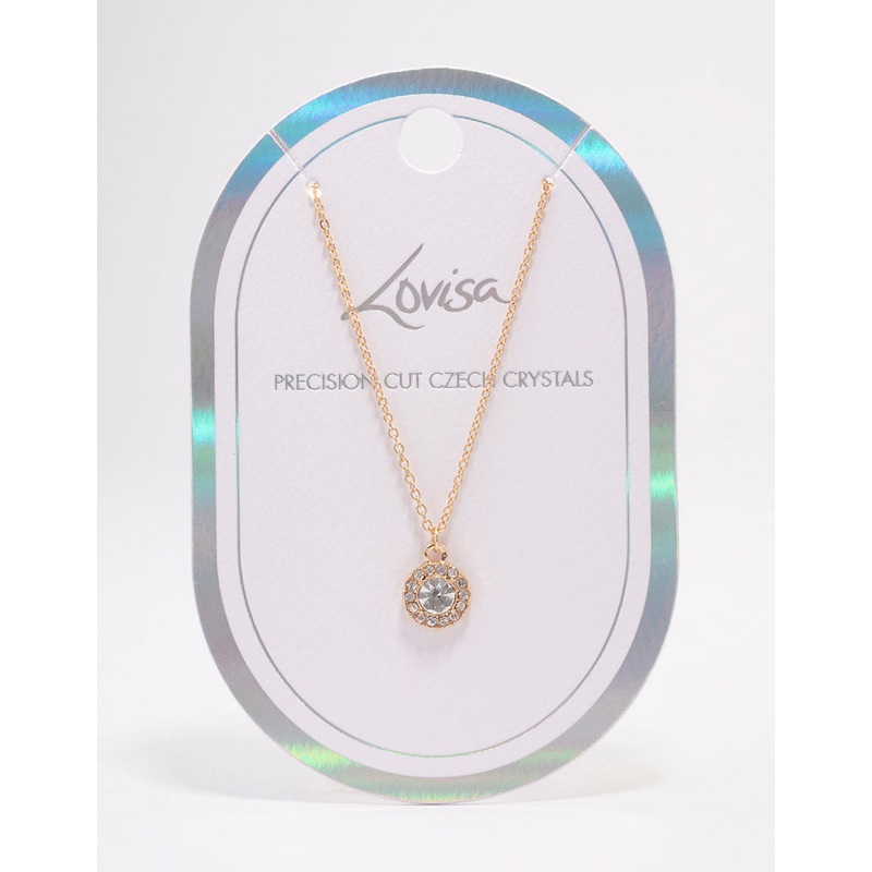This classic chain necklace features a striking, halo-inspired pendant with a czech crystal in the center. Perfect for adding a touch of glamour to your look.